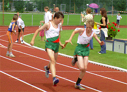 Kreismeisterschaften A/B Königsbrunn 2003 Athleten des SVU dominieren die Kreismeisterschaften der Schüler A/B Sensationell in Form präsentierten sich die Buben und Mädchen bei den Kreismeisterschaften der Schüler/innen A/B in Königsbrunn. 9 Kreismeistertitel, 4 Zweite und 2 Dritte Plätze lautet die Bilanz eines für den SVU denkwürdigen Tages. Den wertvollsten Erfolg feierte die 4 x 75m Staffel der Schüler B. Die altbewährte Staffel mit Philipp Eberle, Florian Bihler, Markus Habdank und Marcus Tarnowski verbesserte den 29 Jahre alten schwäbischen Rekord auf 39,71 sek. Dies war aber nur der Auftakt für weitere Erstplatzierungen für die Jungs: Marcus Tarnowski gewann anschließend die 75m im Einzel mit 10,20 sek und die 2000m in sehr guten 6:46 min. Leider strauchelte er bei dem 60m Hürden Lauf, aber mit seinem dritten Platz war er insgesamt der erfolgreichste Athlet des Tages. Marcus Formkurve scheint immer weiter nach oben zu gehen! Aber auch auf Markus Habdank war wieder Verlass. Sein Sieg über die 1000m in 3:11min war schon fast Pflicht für ihn, dominiert er doch diese Strecke schon seit Jahren. Philipp Eberle konnte sich über die 1000m in 3:30 min über einen dritten Platz freuen. Bei den Schülern A war Philipp Pfänder über die 100m nicht zu schlagen. 12,78 sek lautet seine Siegerzeit. Dazu wurde er jeweils zweiter im Speerwurf mit 35,41m und im Hochsprung mit übersprungenen 1,60m. Philipp, der sich bereits bei den Bayrischen für die Deutschen Meisterschaften qualifizieren konnte, zeigte wieder einmal echte Zehnkämpferqualitäten. Weiter so! Aber auch die Mädchen brauchen sich vor den Erfolgen der Buben nicht zu verstecken. Lisa Pritzl gewann zum ersten mal die 800m in 2:37 min, genauso wie wenig später Annika Schönebeck in 2:23 min. Damit schaffte Annika die Qualifikationsnorm für die Deutschen Meisterschaften! Evelyne Braun war die Vielstarterin des Tages. Und das sehr erfolgreich: Erste Plätze im Kugelstoßen mit 10,03m und im Hochsprung mit 1,56m sowie zwei zweite Plätze über die 300m in 46,53sek und 80m Hürden in 12,62sek zeigen die tollen Siebenkämpfer Qualitäten von Evelyne, die sie gemeinsam mit Annika und Phillip Pfänder auch bei den Deutschen Meisterschaften im August unter Beweis stellen wird. Auch ein dickes Lob an die Trainer. Michael May und Manuela Braun machen beim SVU wirklich tolle Arbeit. Es ist immer wieder erstaunlich, wie aus einem doch kleinen “Dorfverein in nahezu allen Altersklassen junge Talente erkannt und geformt werden. Vielen Dank, ihr Zwei, ihr könnt auch auf Euch sehr stolz sein! | ||||
