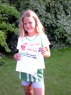 Kreismeisterschaften C/D 2003 Nachwuchs des SV Untermeitingen kann glänzen Wie bei den Profis entscheiden auch bei den ganz jungen Leichtathleten oft nur Zentimeter oder Millisekunden über Sieg oder Niederlage bzw. die Platzverteilung auf dem Siegerpodest. Bei den Kreismeisterschaften der Schüler/Schülerinnen C und D in den Einzelwettbewerben in Rain am Lech zeigten die Untermeitinger Sportler zwar viele persönliche Bestleistungen, zum Sieg sollte es aber häufig nicht ganz reichen. Gleich zu Beginn lief die 4 x 50m Staffel der Schüler D (10 u. 11 Jahre) mit Florian Schummer, Manuel Gröber, Kevin Krah und Lukas Hierl in 29,72 sek neue Bestzeit, aber im letzten Lauf zeigte die Konkurrenz aus Günzburg perfekte Wechsel und war am Ende um die Winzigkeit von einer Zehntel Sekunde schneller. Kevin Krah bewies in den Einzeldisziplinen der Altersklasse M11 seine Vielseitigkeit. Er stellte in allen Disziplinen neue persönliche Bestleistungen auf: Mit 50,0m im Schlagball wurde er Zweiter, mit 4,37m im Weitsprung Dritter, mit 7,82 sek über 50m sowie in 3:35 min über 1000m jeweils Vierter. Kevin hat im nächsten Jahr besonders in den Blockwettkämpfen glänzende Perspektiven. Jannis Eberlein erreichte im Schlagball den Endkampf und wurde mit 40,0m am Ende Sechster, Florian Schummer blieb mit 3,98m im Weitsprung und dem achten Platz unter seinen Möglichkeiten. Beim nächsten Mal klappt es besser, bestimmt! Emanuel Gröber wurde in Altersklasse M10 ebenfalls in neuer persönlicher Bestleistung in 7,79 sek über die 50m Zweiter, er musste sich nur einem Läufer aus Donau-Ries geschlagen geben. Im 1000m Lauf wurde er mit 3:49 min hauchdünn geschlagen Vierter sowie im Weitsprung mit etwas enttäuschenden 3,88 m Sechster. Bei den Schülern M8 schaffte Hubert Gröber im Weitsprung im letzten Versuch mit 3,47m den Sprung auf den zweiten Platz. Im 1000m Lauf kämpfte sich Hubert trotz müder Beine und heißem Wetter tapfer durch und verdiente sich den Dritten Platz in 4:04min redlich. Abgerundet wurde der tolle Tag von Hubert mit seinem vierten Platz im 50m Sprint in 8,82 sek. Auch Johannes Pfänder zeigte ein tolles 1000m Rennen. Er steigerte seine Bestzeit gleich um eine halbe Minute und belegte in 4:11 min einen sehr guten fünften Platz. Erfolgreichster Athlet des Tages war diesmal ein Mädchen. Vanessa Krah wurde in der Altersklasse W8 Kreismeisterin im 50m Lauf in 8,72 sek, hauchdünn vor gleich mehreren Konkurrentinnen. Im anschließenden Weitsprung belegte sie mit 3,25m den Zeiten Platz, leider konnte sie sich im Endkampf auf grund zahlreicher Fehlversuche nicht mehr steigern. Aileen Täuber rundete in der Altersklasse W9 im Ballwurf mit 22,5m und dem Dritten Platz das gute Mannschaftsergebnis der Untermeitinger ab. | ||||