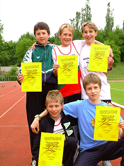| Schwäbische Schülermeisterschaften - Blockwettkämpfe 2003 Zwei schwäbische Titel für SV Untermeitingen Nach dem guten Saisonstart bei den Langstaffeln konnten die Leichtathleten des SV Untermeitingen auch bei den schwäbischen Blockwettkämpfen (5-Kampf) in Aichach Erfolge vorweisen. Vorbereitet von ihren Trainern Manuela Braun und Michael May setzten sich die A/B Schüler/innen gegen die Gegner aus ganz Schwaben gut in Szene. Annika Schönebeck wurde bei den A-Schülerinnen im Block Lauf (100 m 80 m Hürden Weitsprung Ball 2000 m) und Marcus Tarnowski bei den B-Schülern im Block Lauf (75 m 60 m Hürden Weitsprung Ball 1000 m) Schwäbische Meister. Vizemeister wurden Philipp Pfänder (A-Schüler Block Sprint/Sprung) und Markus Habdank (B-Schüler Block Lauf). Daneben gab es noch vier dritte Plätze durch Fabian Braun (B-Schüler Block Wurf), Philipp Eberle (B-Schüler Block Lauf), Romina Schöffel (A-Schülerinnen Block Sprint/Sprung) und Evelyne Braun (A-Schülerinnen Block Sprint/Sprung). Obwohl sie im abschließenden 1000 m Lauf nochmals hervorragende Leistungen boten, musste sich die Mannschaft der B-Schüler mit 10.016 zu 10.226 Punkten der Mannschaft des LAZ Kreis Günzburg geschlagen geben. Aber gerade mit diesen Leistungen im 1000 m Lauf wird die Untermeitinger Staffel bei den Schwäbischen Meisterschaften über 3 x 1000 m am 25.Mai in Friedberg als eine der Favoriten ins Rennen gehen. | |||||||||||||||||||