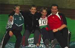 Bayerischer Hallen-Mehrkampf 2004 Untermeitinger Leichtathleten fit bei Bayerischen Hallenmeisterschaften Zu den diesjährigen Bayerischen Hallenmeisterschaften im Mehrkampf (5-Kampf: 60m Hürden, Weitsprung, Hochsprung, Kugelstoßen, 1000/800m Lauf) konnten sich, aufgrund ihrer guten Leistungen im vergangenen Wettkampfjahr, erstmalig die A-Schüler Philipp Pfänder, Markus Habdank und Marcus Tarnowski qualifizieren. Ein sehr hohes Niveau versprach schon die Zulassung. Aus den etwa 150 Meldungen wurden die besten 27 Teilnehmer je Riege ausgewählt. Die beste Einzelplatzierung bei den Schülern M 14 erzielte Marcus Tarnowski, der persönliche Bestleistungen im Weitsprung (5,35m) und im 1000m Lauf (2:57min) erreichte und somit auf dem 5. Platz landete. Markus Habdank sprang erstmalig im Weitsprung über 5m (5,01) und belegte am Ende den 18. Platz. Philipp Pfänder, der bei den Schülern M 15 startete, konnte durch eine sehr gute Leistung im Hochsprung (1,70m) überzeugen und damit den 13. Platz belegen. Abgerundet wurde das gut Abschneiden der Athleten durch einen beachtlichen 5. Platz in der Mannschaftswertung. Eine Woche später startete Annika Schönebeck ebenfalls bei den Bayerischen Mehrkampfmeisterschaften in der weiblichen Jugend B. Sie konnte sich mit kontinuierlich guten Leistungen einen hervorragenden 9. Platz sichern. Diese guten Ergebnisse deuten auf eine vielversprechende Freiluftsaison hin. | |||||||||||||||