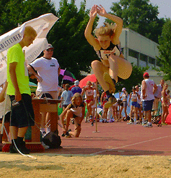 Deutsche Meisterschaften 2003 In diesem Jahr feiert die Abteilung Leichtathletik des SV Untermeitingen ihr 10 jähriges Bestehen. Was einst klein begann, hat sich mittlerweile zu einer der erfolgreichsten Abteilungen des SV Untermeitingen entwickelt: Nach einer erfolgreichen Saison mit zahlreichen Titeln auf Kreis- und Schwäbischer Ebene ging für drei junge Athleten ein Traum in Erfüllung: Ein Start bei Deutschen Meisterschaften. Die Teilnahme haben sich die beiden 15 jährigen Mädels Annika Schönebeck und Evelyne Braun sowie der 14 jährige Phillip Pfänder hart erarbeitet. Denn wer auf bundesweiter Ebene antreten will, dem reicht nicht mehr nur sein Talent. Vielmehr muss ganz konsequent an Kondition, Schnellkraft, Technik und Beweglichkeit gearbeitet werden, mit viel Geduld und Willenskraft. Die Trainer Michael May und Manuela Braun haben die drei jungen Sportler auch dementsprechend lange und intensiv vorbereitet. Allein die schwierige Hürde der Qualifikation zu meistern ist eine grandiose Leistung: Im Schnitt schafften es in diesem Jahr gerade einmal 40 Athleten pro Disziplin, die vom DLV geforderten Qualifikationsleistungen zu erfüllen. Am 09./10.08.03 war es endlich soweit: Gemeinsam mit Trainer Michael May ging es mit dem Auto für 4 Tage nach Lage/Westfalen, um sich mit 583 anderen Sportlern aus ganz Deutschland zu messen: Mit neuen Trikots im Gepäck, natürlich etwas Lampenfieber, aber hoch motiviert. An den Wettkampftagen setzten Temperaturen von 40° im Schatten allen Sportlern heftig zu. Zur Erleichterung gab es für alle Sportler und Betreuer freien Zutritt zum danebenliegenden Schwimmbad, so konnte man sich wenigstens zwischendurch abkühlen. Bei einigen Athleten litten die Leistungen dennoch unter der Hitze einige kamen allerdings sehr gut damit zurecht. Unseren drei Athleten war die Anspannung und die Nervosität anfangs anzumerken. Michael May musste besonders bei den Mädchen den einen oder anderen Griff in die psychologische Trickkiste vornehmen, aber letztendlich waren die vier ein harmonisches Team, das auch viel Spaß an den Wettkämpfen hatte. Annika Schönebeck trat in den Blockwettkämpfen Block Lauf (100m, 80m Hürden, Weitsprung, Ballwurf, 2000m) an. Hier schafften es gerade einmal 20 Mädchen, die Qualifikationsnorm zu erfüllen. Annika zeigte einen guten Wettkampf, besonders im Weitsprung mit 4,89m zählte sie zu den Besten. Mit den Zeiten über 100m (13,60 sek) und 80m Hürden (13,48 sek) war sie zufrieden. Beim abschließenden 2000m Lauf musste Annika aber der Hitze Tribut zollen. Sie schaffte dennoch den 10. Platz das ist eine hervorragende Leistung. Evelyne Braun hatte es im Siebenkampf mit der zahlenmäßig stärksten Konkurrenz zu tun: Über 70 Mädchen gingen an den Start. Evelyne überzeugte wieder einmal durch ihre Konstanz: Nach sehr gute Leistungen im Hochsprung (1,60m) und Kugelstoßen ( 9,57m) war sie ganz vorne dabei. Aber auch mit den Ergebnissen in den restlichen Disziplinen kann Evelyne zufrieden sein: 80m Hürden (12,65 sek), Weitsprung (4,70m) 100m ( 13,48 sek) Speerwurf ( 26,32m) und 800m Lauf ( 2:44,32 Min) ergaben am Ende den 16. Platz. Respekt, gerade im Hinblick auf die hohe Teilnehmerzahl. Phillip Pfänder war im Block Sprint/Sprung ( 100m, 80m Hürden, Weitsprung, Hochsprung, Speerwurf) gemeldet. Phillip zeigte sich zum Höhepunkt der Saison leider etwas ausgepowert. Er war zwar hoch motiviert und wollte alles geben, aber leider konnte er sein Leistungsniveau der Bayrischen Wettkämpfe nicht halten. Am Ende belegte er den 34. Platz. Sicherlich wäre da weit mehr drin gewesen, aber ein Start bei den Deutschen Meisterschaften- das ist alleine ein prächtiger Erfolg! So haben unsere drei Athleten den Bekanntheitsgrad der Gemeine Untermeitingen in Deutschland enorm gesteigert: Es war eine tolle Sache, wenn bei der Vorstellung der Sportler neben Vereinen wie SV Preußen Berlin, TSV 1860 München oder Bayer Leverkusen auch der Name SV Untermeitingen zu hören war! | ||||||||||||