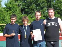 | Erster Bayrischer Einzeltitel für den SV Untermeitingen Die Formkurve der Untermeitinger Leichtathleten zeigt weiter steil nach oben. Als sich vergangene Woche 3 A-Schüler mit Spitzenleistungen bei den Schwäbischen für die Bayrischen Meisterschaften im Blockwettkampf in Herzogenaurach qualifizieren konnten, wurde bereits mit vorderen Plätzen spekuliert. Die Athleten des SV Untermeitingen reisten also hoch motiviert und durch Trainer Michael May topfit vorbereitet nach Herzogenaurach an. Am 26.06. konnte dann sogar neben sehr guten Platzierungen der erste Bayrische Einzeltitel eines Leichtathleten des SV Untermeitingen gefeiert werden. Der Blockwettkampf ist ein Mehrkampf, bei dem die Athleten die Möglichkeit haben, je nach ihren stärksten Disziplinen in unterschiedlichen ’Blöcken ihren Schwerpunkt zu setzen. Marcus Tarnowski konnte sich mit 2587 Punkten den 1. Platz bei der Bayerischen Meisterschaft im ’Block Lauf der Schüler M14 erkämpfen. Dies war ein hart umkämpfter Sieg, denn nach den etwas enttäuschenden 51 m im Ballwurf belegte Marcus nur Platz 4. Mit seiner sehr guten Zeit von 12,26 s über die 80m Hürden konnte er sich schon auf Platz 2 verbessern. Dennoch war der führende Florian Brettner vom TV Burglengenfeld noch 63 Punkte vor ihm. Marcus Tarnowski sprang hervorragende 5,26m weit und lief eine neue persönlich Bestzeit über 100m (12,38 s) und konnte sich somit seinem Konkurrenten bis auf 22 Punkte nähern. Somit stand vor dem abschließenden 2000 Meter Lauf fest: Um zu gewinnen musste Marcus 11s schneller laufen als Florian. In einem dramatischen Rennen konnte Marcus mit seiner starken Zeit von 6:32,11 seinem Konkurrenten sogar über 24 Sekunden abnehmen und den Gesamtsieg für sich entscheiden. Herzlichen Glückwunsch zum größten Einzelerfolg eines Leichtathleten seit Gründung der Abteilung Leichtathletik beim SVU vor 11 Jahren. Doch auch die beiden anderen Athleten zeigten einmal mehr ihr großes Talent: Philipp Pfänder trat im ’Block Sprint/Sprung der Schüler M 15 an und konnte mit sehr guten Leistungen (100m: 12,35s / 80m Hürden: 12,01s / Weitsprung: 5,03m / Hochsprung: 1,64m Sperrwurf: 37,47m) 2707 Punkte erzielen und belegte damit einen sehr guten 5. Platz. Florian Bihler kämpfte sich bei den Schülern M14 im ’Block Wurf mit 2146 Punkte auf den 13. Platz (100m: 13,54s / 80m Hürden: 14,54s / Weitsprung: 4,52m / Kugelstoßen: 8,65m Diskuswurf: 21,69m)