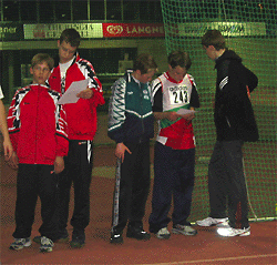 Bayerischer Hallen-Mehrkampf 2004 Untermeitinger Leichtathleten fit bei Bayerischen Hallenmeisterschaften Zu den diesjährigen Bayerischen Hallenmeisterschaften im Mehrkampf (5-Kampf: 60m Hürden, Weitsprung, Hochsprung, Kugelstoßen, 1000/800m Lauf) konnten sich, aufgrund ihrer guten Leistungen im vergangenen Wettkampfjahr, erstmalig die A-Schüler Philipp Pfänder, Markus Habdank und Marcus Tarnowski qualifizieren. Ein sehr hohes Niveau versprach schon die Zulassung. Aus den etwa 150 Meldungen wurden die besten 27 Teilnehmer je Riege ausgewählt. Die beste Einzelplatzierung bei den Schülern M 14 erzielte Marcus Tarnowski, der persönliche Bestleistungen im Weitsprung (5,35m) und im 1000m Lauf (2:57min) erreichte und somit auf dem 5. Platz landete. Markus Habdank sprang erstmalig im Weitsprung über 5m (5,01) und belegte am Ende den 18. Platz. Philipp Pfänder, der bei den Schülern M 15 startete, konnte durch eine sehr gute Leistung im Hochsprung (1,70m) überzeugen und damit den 13. Platz belegen. Abgerundet wurde das gut Abschneiden der Athleten durch einen beachtlichen 5. Platz in der Mannschaftswertung. Eine Woche später startete Annika Schönebeck ebenfalls bei den Bayerischen Mehrkampfmeisterschaften in der weiblichen Jugend B. Sie konnte sich mit kontinuierlich guten Leistungen einen hervorragenden 9. Platz sichern. Diese guten Ergebnisse deuten auf eine vielversprechende Freiluftsaison hin. | |||||||||||||||