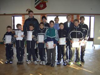 | Dieser Crosslauf ist richtig ausbaufähig Doppelsieg für die TG Viktoria Augsburg in Untermeitingen (clad.) Schnee und Eis bedecken derzeit die Stadionanlagen. An einen Sportbetrieb ist nicht zu denken. Dass eine Nutzung dennoch möglich ist, hat die Leichtathletikabteilung des SV Untermeitingen vorgemacht: Im Stadion und in seinem engeren Umkreis zogen am Samstag beim diesjährigen Crosslauf die Leichtathleten ihre Runden. Das Team um Thomas Mosler hatte aus der Kritik an der letztjährigen Streckenführung gelernt und eine abwechslungsreiche Crosstrecke mit sehr kurzen, aber scharfen Anstiegen entwickelt. Für die Zuschauer und Trainer war der Rennverlauf immer wieder gut erkenntlich. Im Vorlauf der Schüler und Jugend bewies der Veranstalter mit elf "SVUlern" seine intensive Nachwuchsarbeit. Als erster Läufer überschritt nach 1700 Metern und 9:20 Minuten der zehnjährige Hubert Gröber die schneebedeckte Ziellinie im Stadion. Nachwuchstalente der bayerischen Leichtathletik kämpften auf der 3100 Meter langen Distanz der älteren Schüler und Jugendlichen. Der 16-jährige Maximilian Weniger vom Schwaben Augsburg siegte in 11:51 Minuten vor dem 14-jährigen Marcus Tarnowski (12:11 Minuten) vom "SVU". Bei den Mädchen gewann Julia Weniger in 13:32 Minuten. 38 Läufer und drei Läuferinnen starteten im Hauptlauf über 5600 Meter, die den Lauf vielfach als Vorbereitung für die anstehenden Crosslaufmeisterschaften (27. Februar) in Wehringen einstuften. Zwei Runden lang lag Karl-Heinz Schormeier an der Spitze des Feldes. Der 40-jährige Bauunternehmer aus Untermeitingen wurde allerdings konstant von seinem Vereinskameraden Klaus Löwenhagen von der TG Viktoria Augsburg verfolgt. Auf dem 3. Platz lief mit deutlichem Abstand stets der königsbrunner Triathlet Manfred Winter. Gut im Läuferfeld hielt sich die 19-jährige Maria Hivner von der TG Viktoria Augsburg. Der Veranstalter hatte den Schnee auf der Strecke gewalzt, die Spikes der Läufer wühlten den Schnee natürlich auf und das Rennen wurde immer kraftraubender. Nach 21:57 Minuten kam Klaus Löwenhagen mit 16 Sekunden Vorsprung auf Schormeier ins Ziel. Maria Hivner benötigte 28:45 Minuten und ließ noch 20 Männer hinter sich. Der best platzierteste Läufer des Veranstalters wurde mit 27:05 Minuten Ralf Detke-Pfänder. "Die Veranstaltung könnte durchaus zu Crosslaufmeisterschaften entwickelt werden" bewertete ein Funktionär des Bayrischen Leichtathletikverbandes (BLV) den Untermeitinger Crosslauf. Wie sind Wettkämpfe bei klirrender Kälte zu beurteilen? Dr. Andreas Weniger sieht keine Gefahren: "Gut trainierte und absolut gesunde Läufer und Läuferinnen überstehen die Anstrengung ohne Probleme." | |||||||||||||||